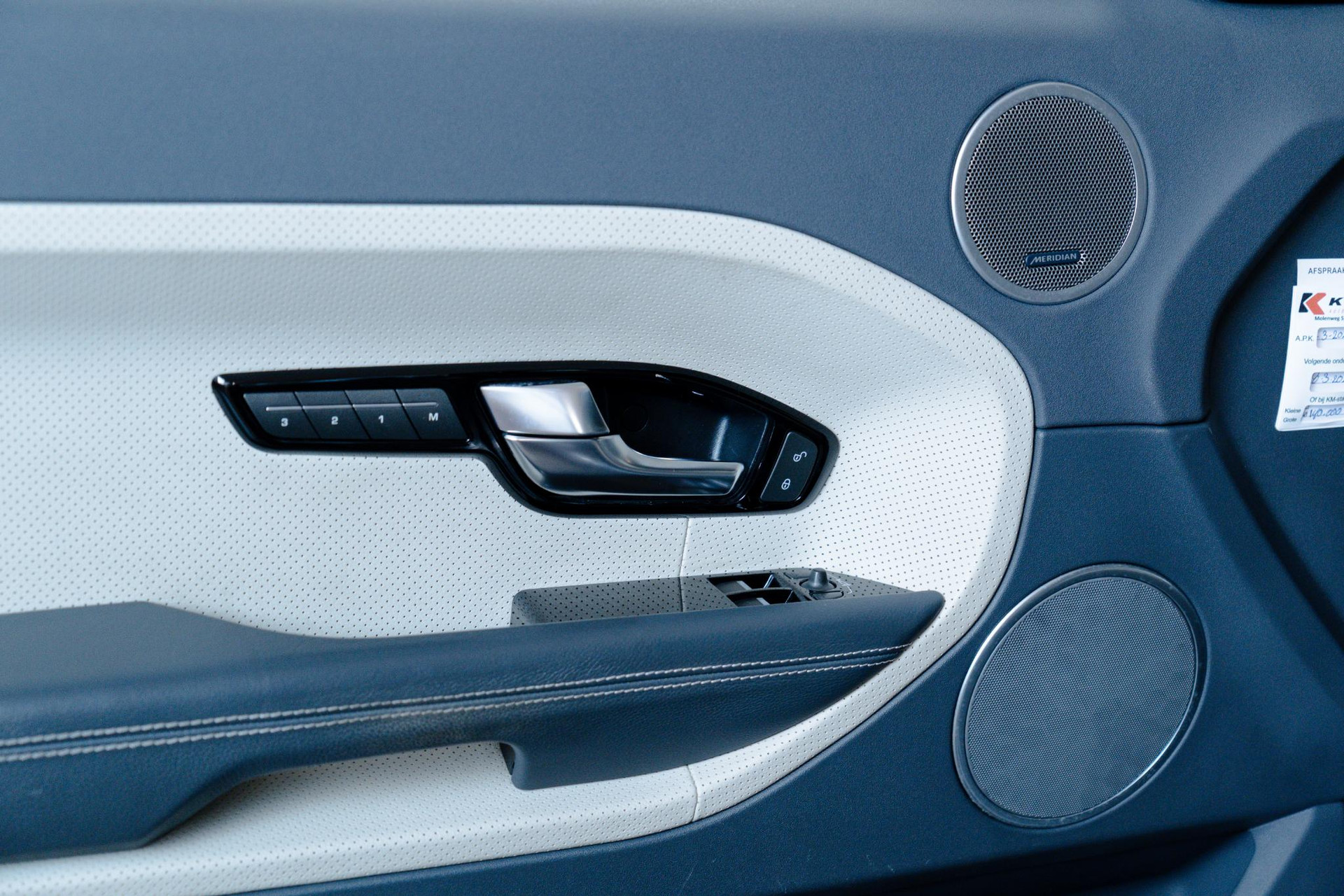 Deze Land Rover Range Rover Evoque Coupé staat garant voor vele veilige en comfortabele kilometers. De aandrijving van deze Land Rover wordt verzorgd door een viercilinder benzinemotor en een automatische transmissie. De klasse komt van het lederen interieur en het slimme gemak van de elektrisch bedienbare achterklep. Dankzij de elektrische stoelbediening is het gemakkelijk om de optimale zitpositie te vinden. Het glazen panoramadak biedt u een breed zicht op de omgeving. Pak aan, 't is winter! Zo'n verwarmd stuurwiel is dan bijzonder prettig! Xenonverlichting zorgt voor een krachtige en heldere lichtbundel. Zuinig rijden was nog nooit zo lonend. Goed dat deze auto is uitgerust met een eigentijds start-stopsysteem! Tot de voorzieningen van deze auto behoren 19 inch lichtmetalen velgen, elektrisch inklapbare buitenspiegels, extra getint glas, verwarmde ruitensproeiers, elektrisch bedienbare ramen voor en metallic lak.