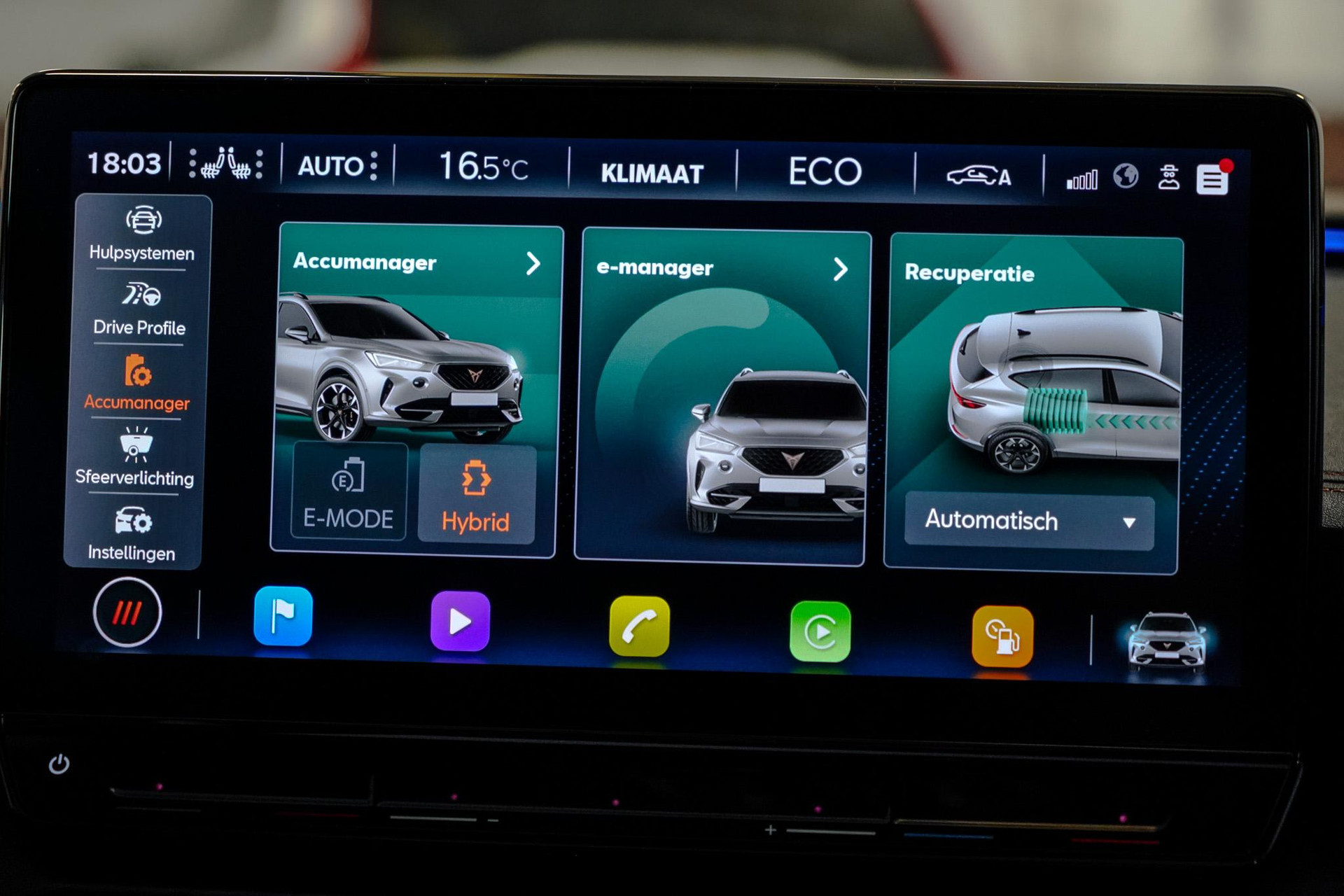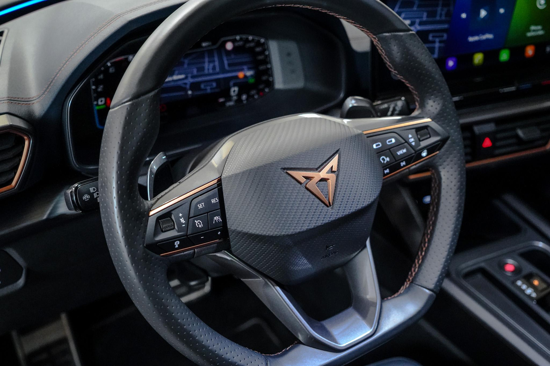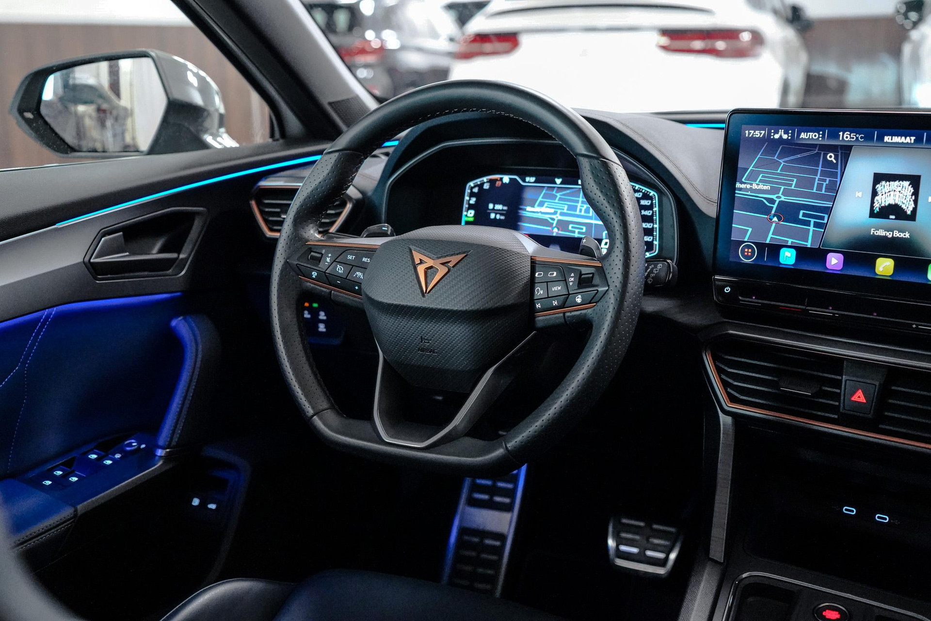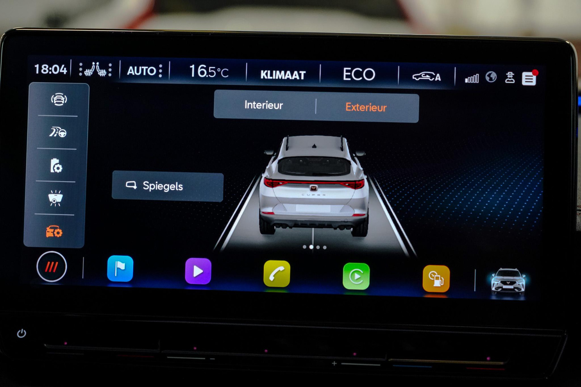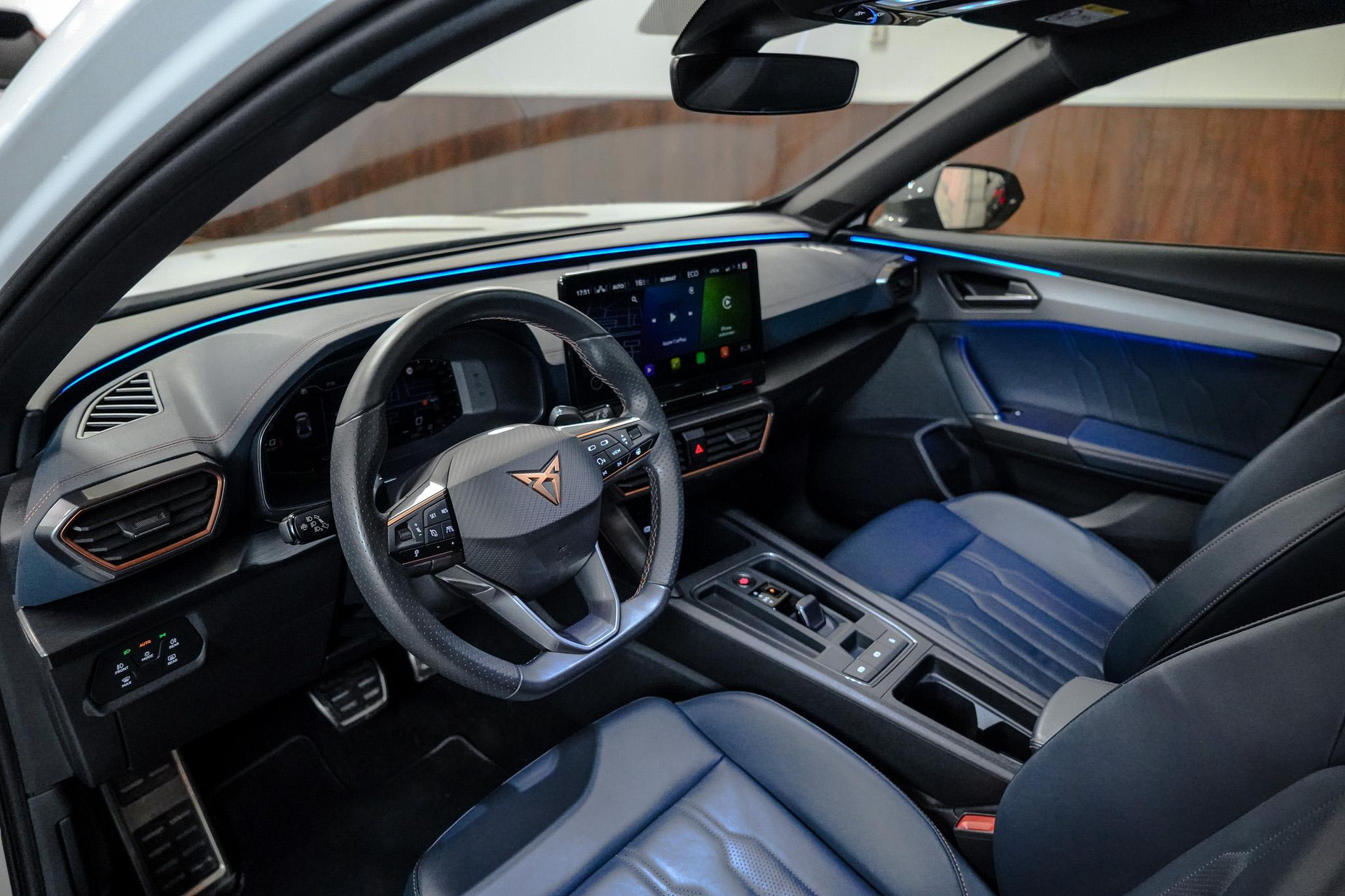 Tijdens de rit wordt u als bestuurder ondersteund door verschillende systemen die de weg en uw omgeving in de gaten houden. Onderweg fungeert de verkeersbord-detectie als het ware als uw bijrijder en attendeert u op de verkeersborden langs de weg. Indien u onbedoeld de rijstrook lijkt te verlaten, reageert het Lane-keeping systeem meteen en corrigeert. Het risico van een kop-staartbotsing wordt aanzienlijk verminderd door de forward collision warning. In deze CUPRA vinden we verder een dodehoekdetectie, hill hold functie, vermoeidheidsherkenning, autonoom remsysteem en bandenspanningcontrolesysteem.