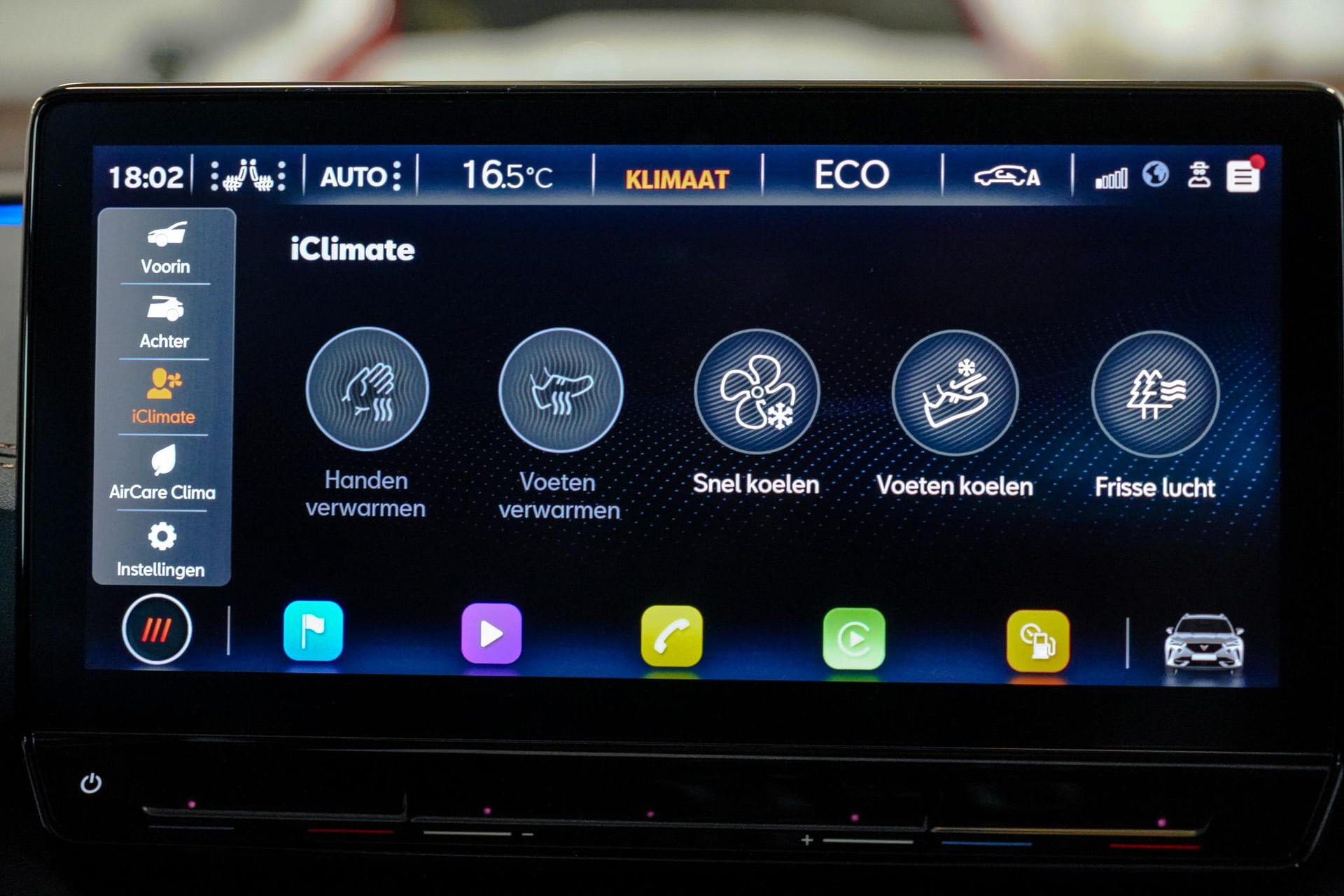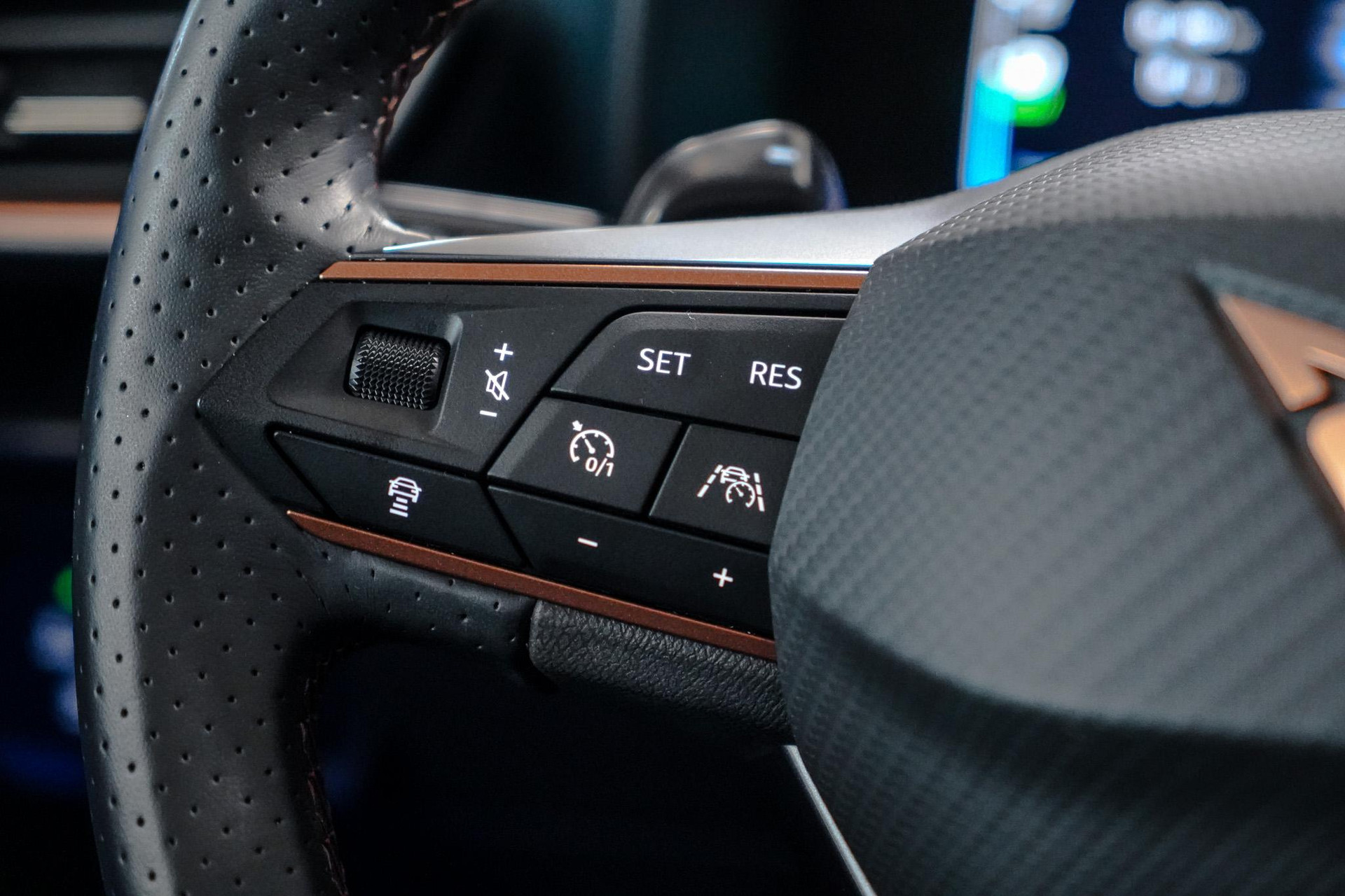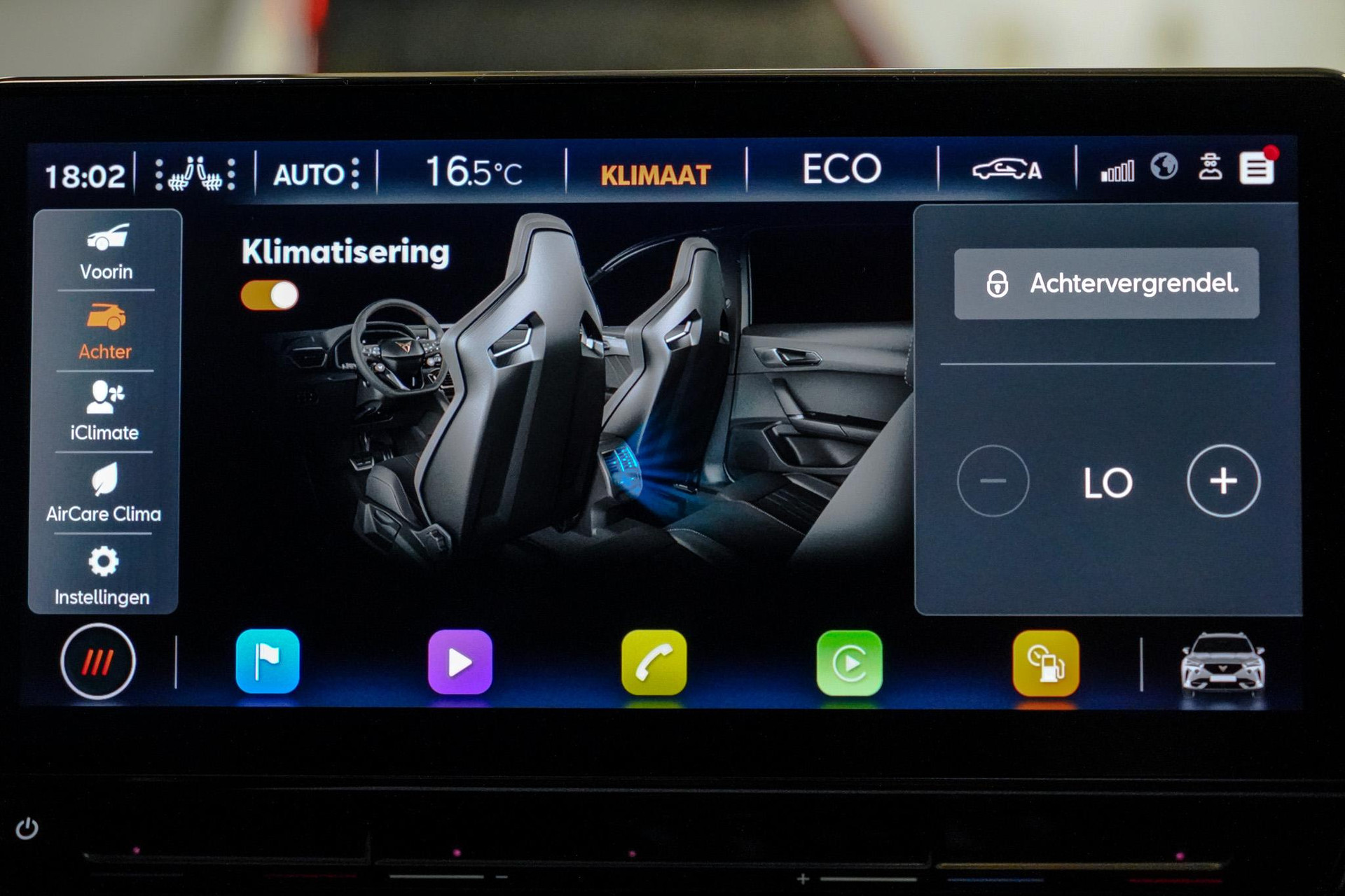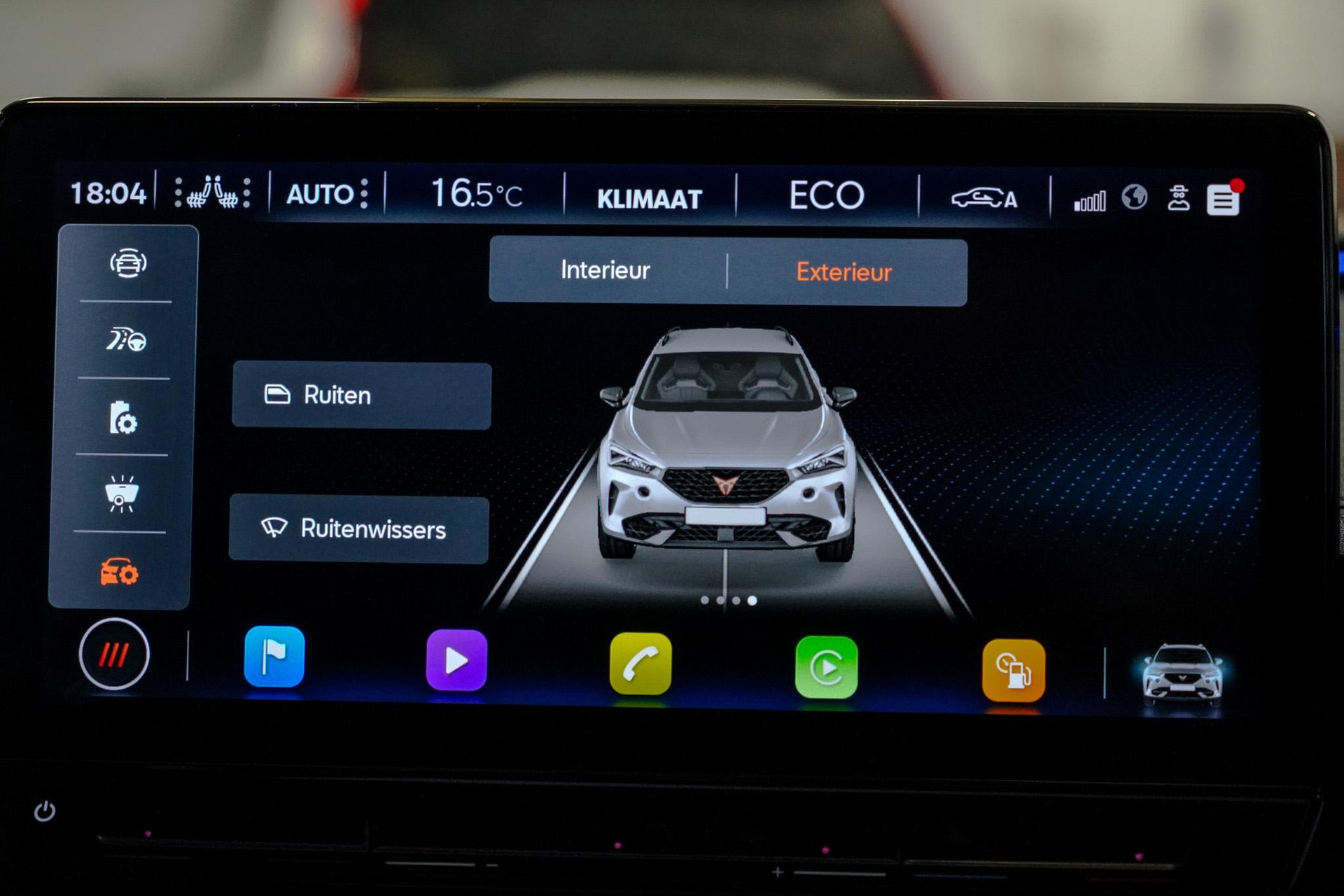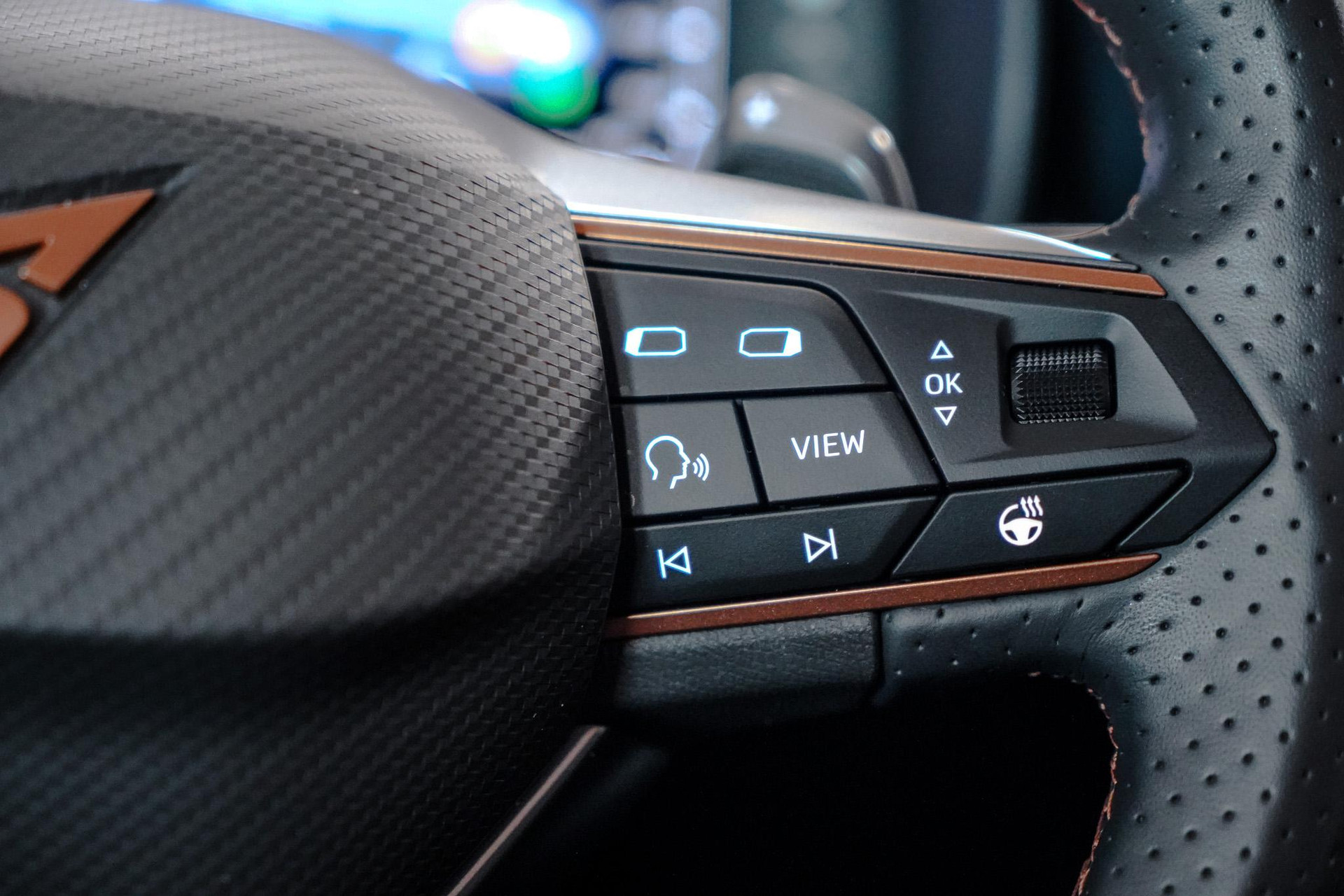 Tijdens de rit wordt u als bestuurder ondersteund door verschillende systemen die de weg en uw omgeving in de gaten houden. Onderweg fungeert de verkeersbord-detectie als het ware als uw bijrijder en attendeert u op de verkeersborden langs de weg. Indien u onbedoeld de rijstrook lijkt te verlaten, reageert het Lane-keeping systeem meteen en corrigeert. Het risico van een kop-staartbotsing wordt aanzienlijk verminderd door de forward collision warning. In deze CUPRA vinden we verder een dodehoekdetectie, hill hold functie, vermoeidheidsherkenning, autonoom remsysteem en bandenspanningcontrolesysteem.