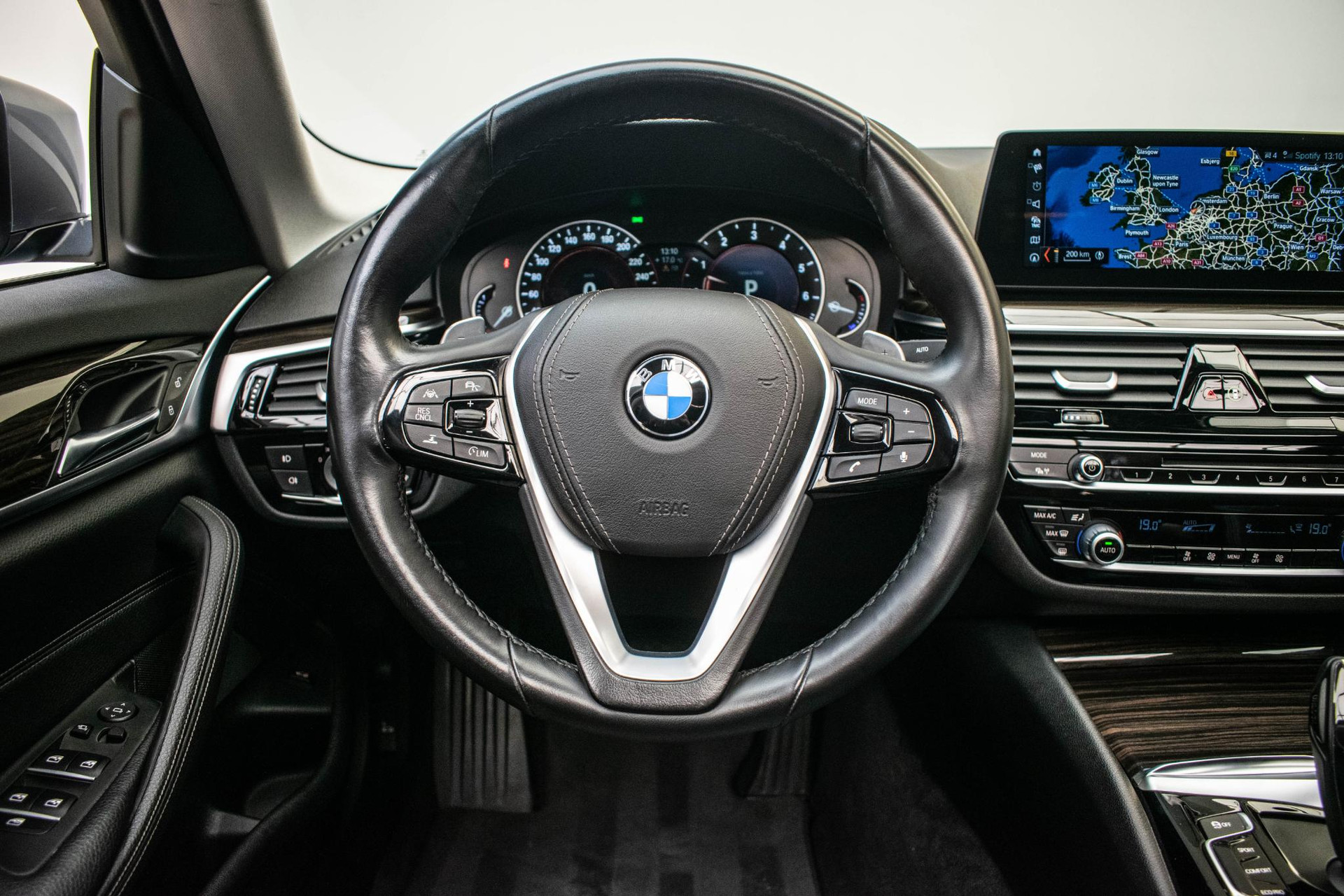Zoals u mag verwachten van deze BMW 5-serie is hij uitgerust met een reeks aan actieve veiligheidssystemen. De actuele snelheidslimiet, een inhaalverbod en andere verkeersborden; de verkeersborddetectie ondersteunt u tijdens elke rit. Het Lane-keeping systeem zorgt dat u mooi binnen de lijntjes blijft. Ongemerkt buiten de rijstrook komen is er niet meer bij. Forward collision warning helpt u om kop-staart aanrijdingen te voorkomen. Bovenop deze veiligheidsfeatures heeft deze BMW bovendien dodehoekdetectie, hill hold functie, brake assist en bandenspanningcontrolesysteem.