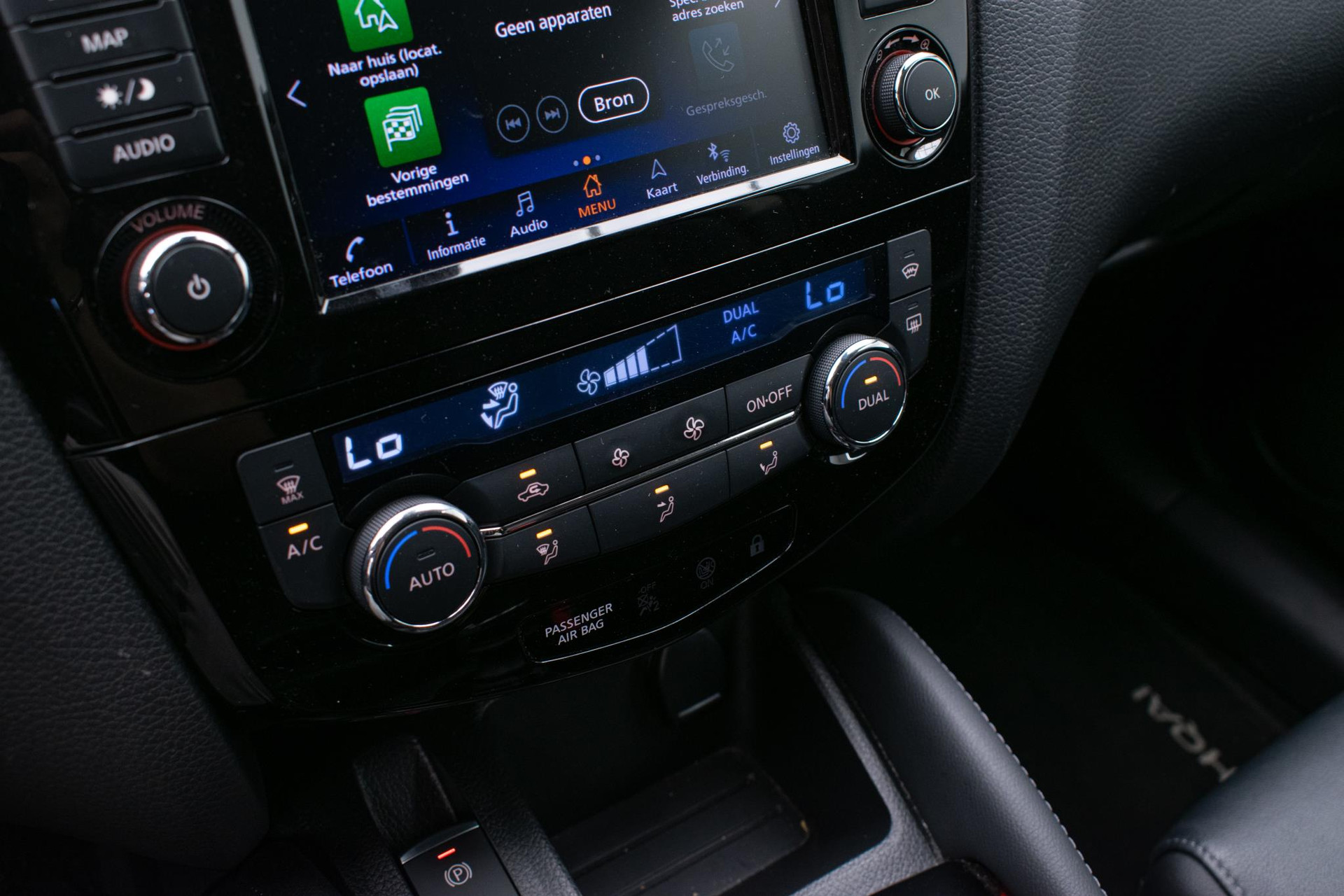 Het gebruik van de 360 graden camera op deze auto zorgt voor een groter gezichtsveld en helpt de dode hoeken te elimineren. Het full map navigatiesysteem en het audio-installatiesysteem (met DAB-ontvangst!) bedient u met knoppen op het stuur of met gesproken commando's. Tot de standaard uitrusting van deze auto hoort ook automatische airconditioning. De parkeersensoren waarschuwen wanneer u te krap inparkeert of dat ene paaltje niet hebt gezien. De elektronische systemen in deze Nissan helpen u actief om comfortabeler te rijden. Een automatisch inschakelbare verlichting en een regensensor houden de omstandigheden onderweg in de gaten. Deze auto is voorzien van cruise control, keyless entry, automatisch dimmende binnenspiegel en lederen stuur en versnellingspook.