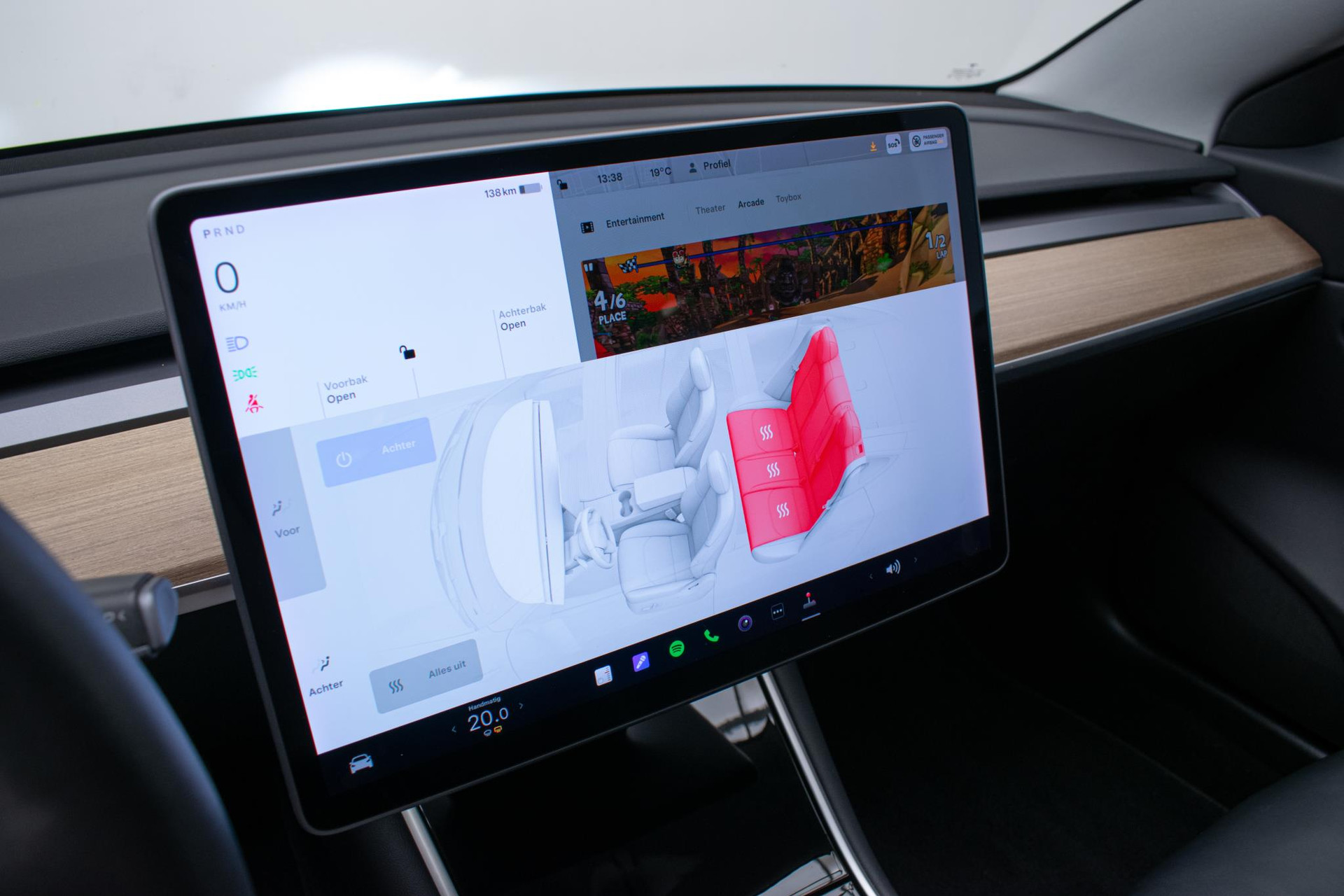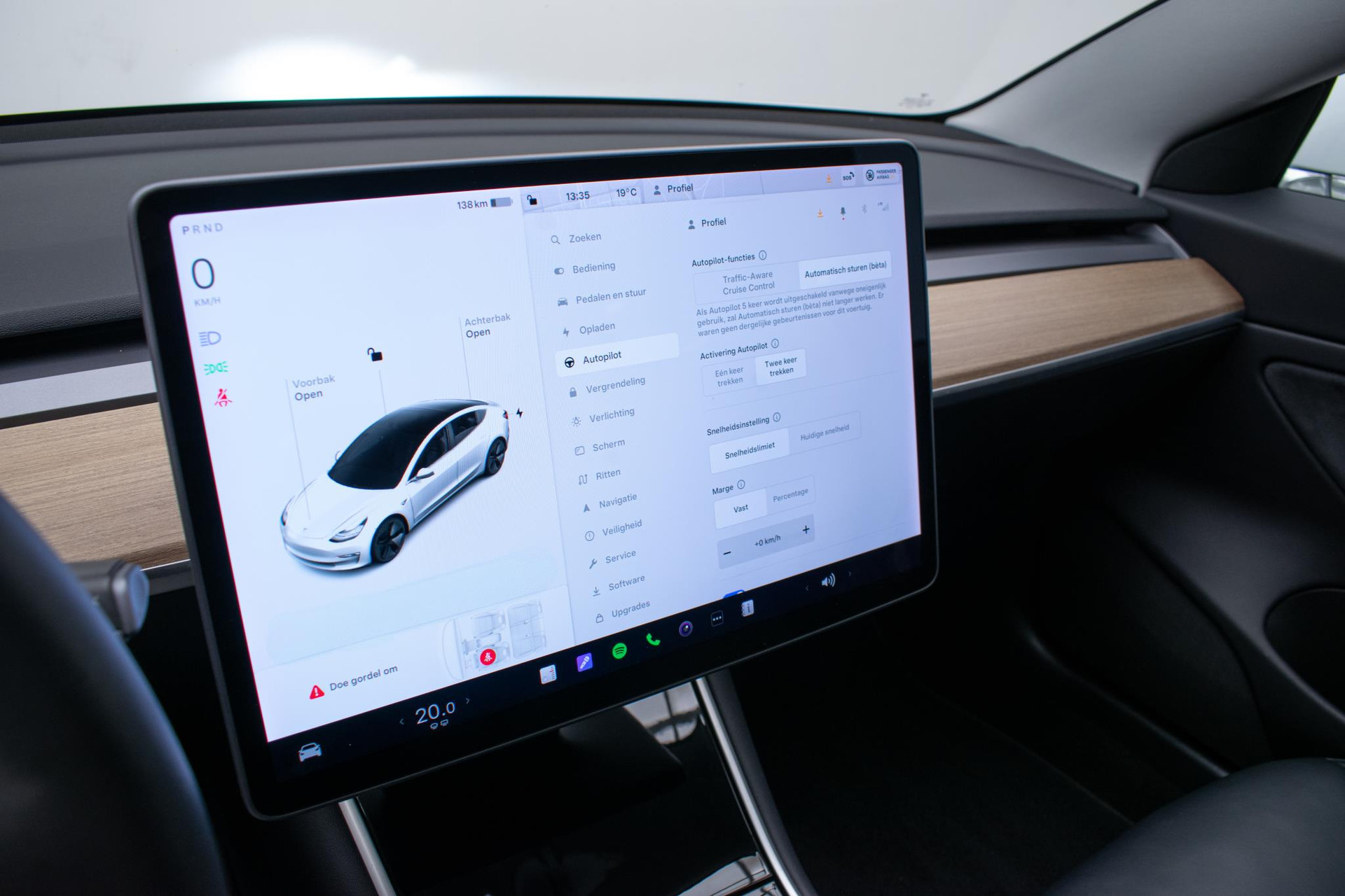 Zoals u mag verwachten van deze Tesla Model 3 is hij uitgerust met een reeks aan actieve veiligheidssystemen. Forward collision warning is een automatisch waarschuwingssysteem dat direct in werking treedt bij gevaar voor een kop-staartbotsing. Bovenop deze veiligheidsfeatures heeft deze Tesla bovendien dodehoekdetectie en autonoom remsysteem.
